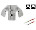 | Crimpeinsatz für | isolierte Kabelschuhe 0,5 - 6 mm² unisolierte Kabelschuhe 0,5 - 10 mm² unisolierte Flachstecker 0,5 - 6 mm² Flachstecker / D-Sub Stecker 2,5 - 10 mm² Zündkerzenstecker und Verteiler | Aderendhülsen 0,5 - 35 mm² | RG6 RG8 RG11 RG58 RG59 RG62 RG174 RG179 RG213 RG8218 |
