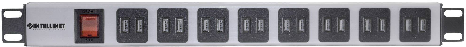 19" Steckdosenleiste mit 16 USB-Ladeports, Netzschalter, max. 2,1 A Ausgangsleis