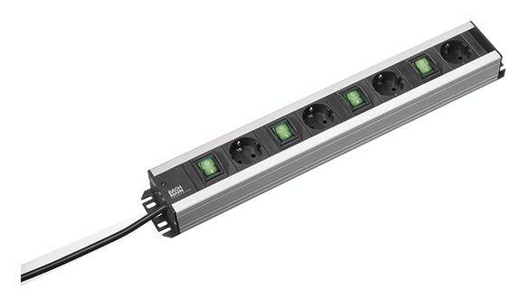 Bachmann 300.049 Steckdosenleiste mit Schalter Schwarz, Aluminium Schutzkontakt