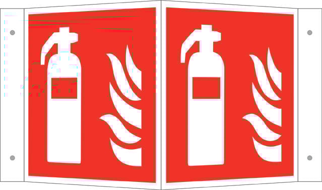 Brandschutzschild, nachleucht., Winkelschild, Feuerlöscher, Maß: 45 x 20 x 20 cm DIN EN ISO 7010 F001 ASR A1.3 F001