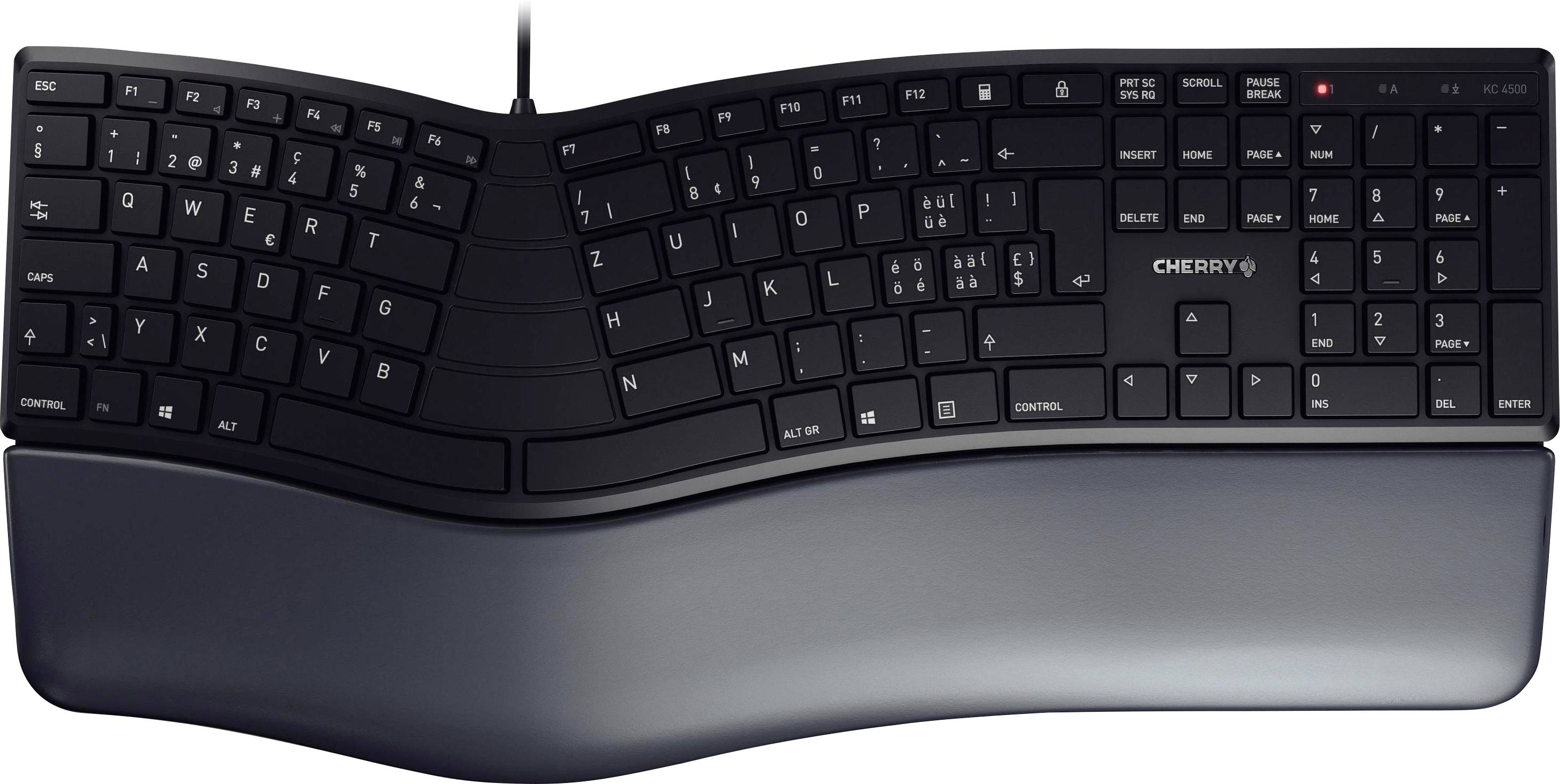 CHERRY Cherry Tastatur KC 4500 ERGO Schwarz, Schweiz Kabelgebunden Tastatur Schweiz, QWERTZ Schwarz Handballenauflage, H