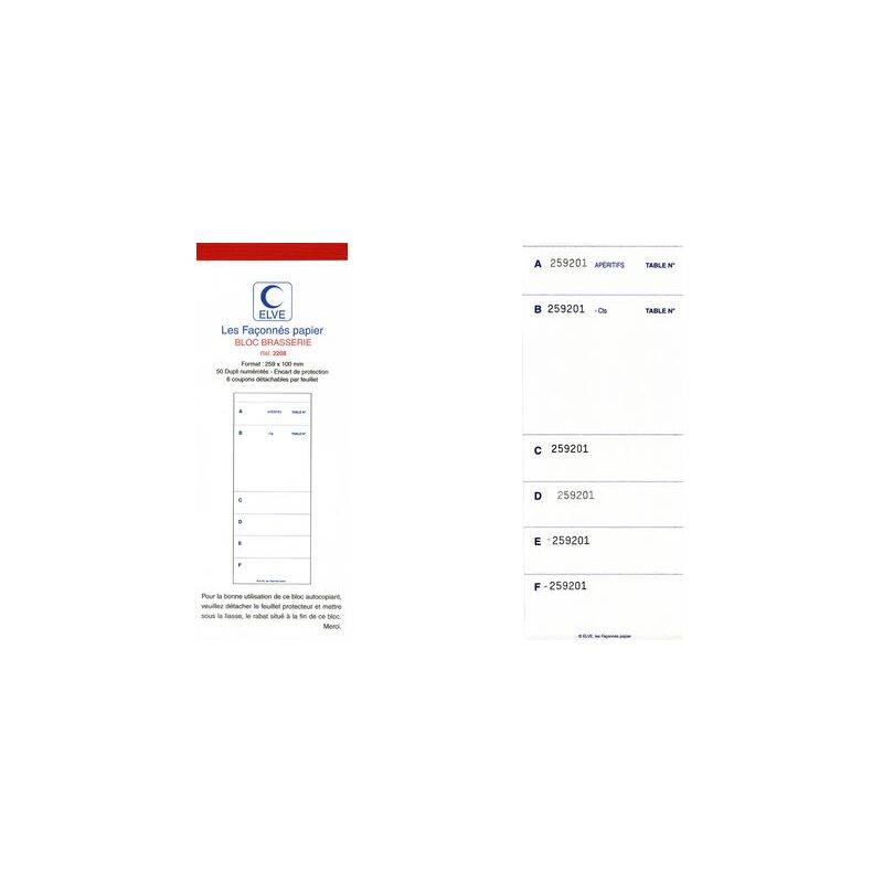 ELVE Bloc brasserie dupli, 50 feuilles autocopiantes