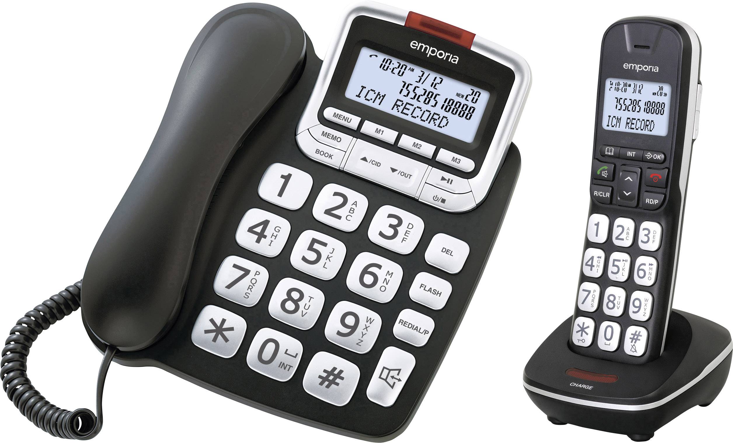 Emporia GD61ABB Schnurgebundenes Seniorentelefon Anrufbeantworter, inkl. Mobilteil, Freisprechen Beleuchtetes Display Sc