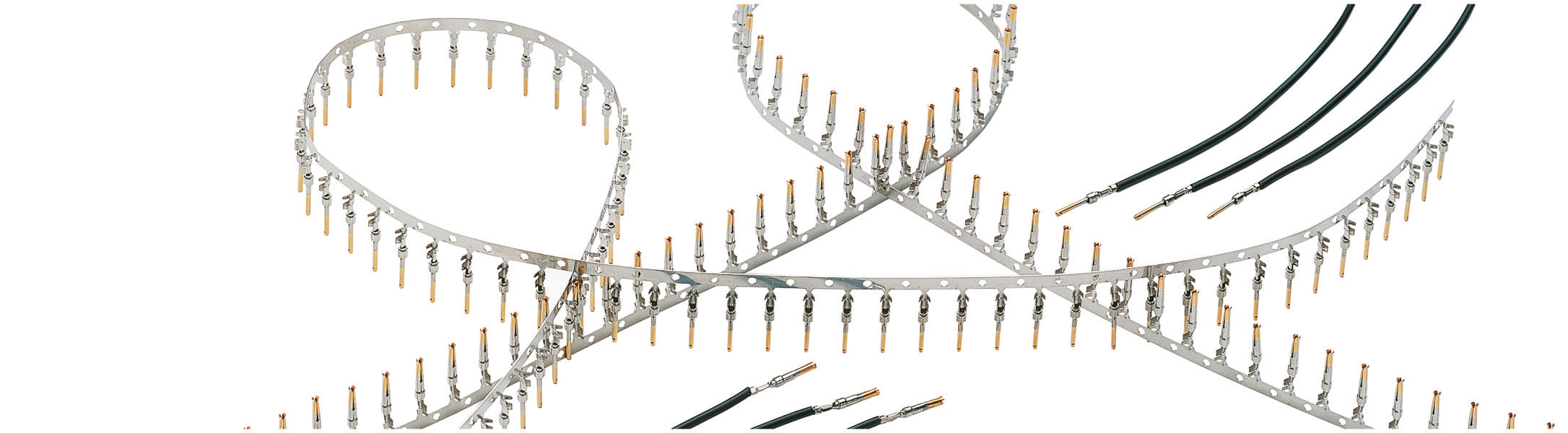 Ein dunkelblauer Banner zeigt „Kabel- und Schlauchmeterware“ mit einem gelben Pfeil nach rechts. Linkt zum Service Kabel- und Schlauchmeterware
