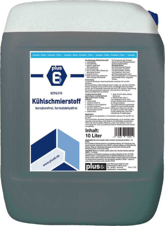 Kühlschmierstoff, wassermischbar 8296310 Inhalt 10 l Gebindeart Kanister pH-Wert alkalisch