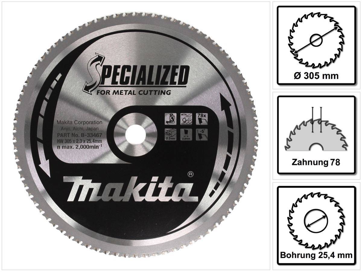 Makita HM-Kreissägeblatt, Spezial, TCT TCT • 305 x 25,4 mm • 78 Zähne • Metall