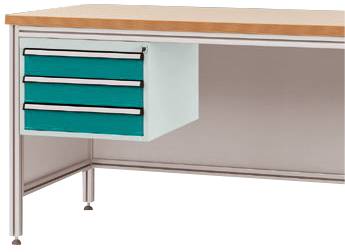 Manuflex ZB4625.5021 Gehäuse-Unterbau für ALU-Arbeitstische, Nutzhöhe 300 mm mit 3 Schubfächern, für Tischtiefe 600 mm