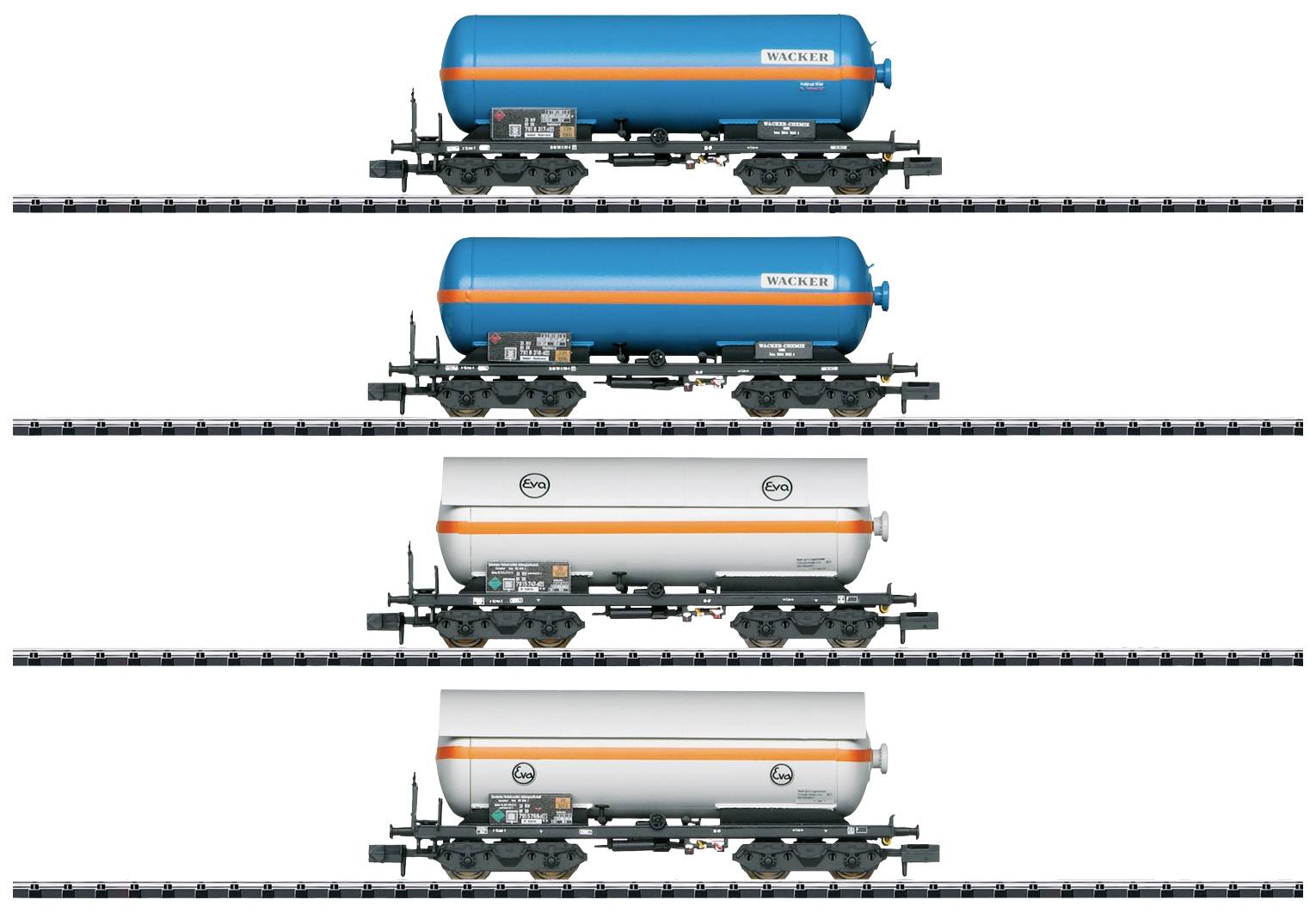 MiniTrix 15538 N 4er-Set Kesselwagen der EVA/WACKER, MHI