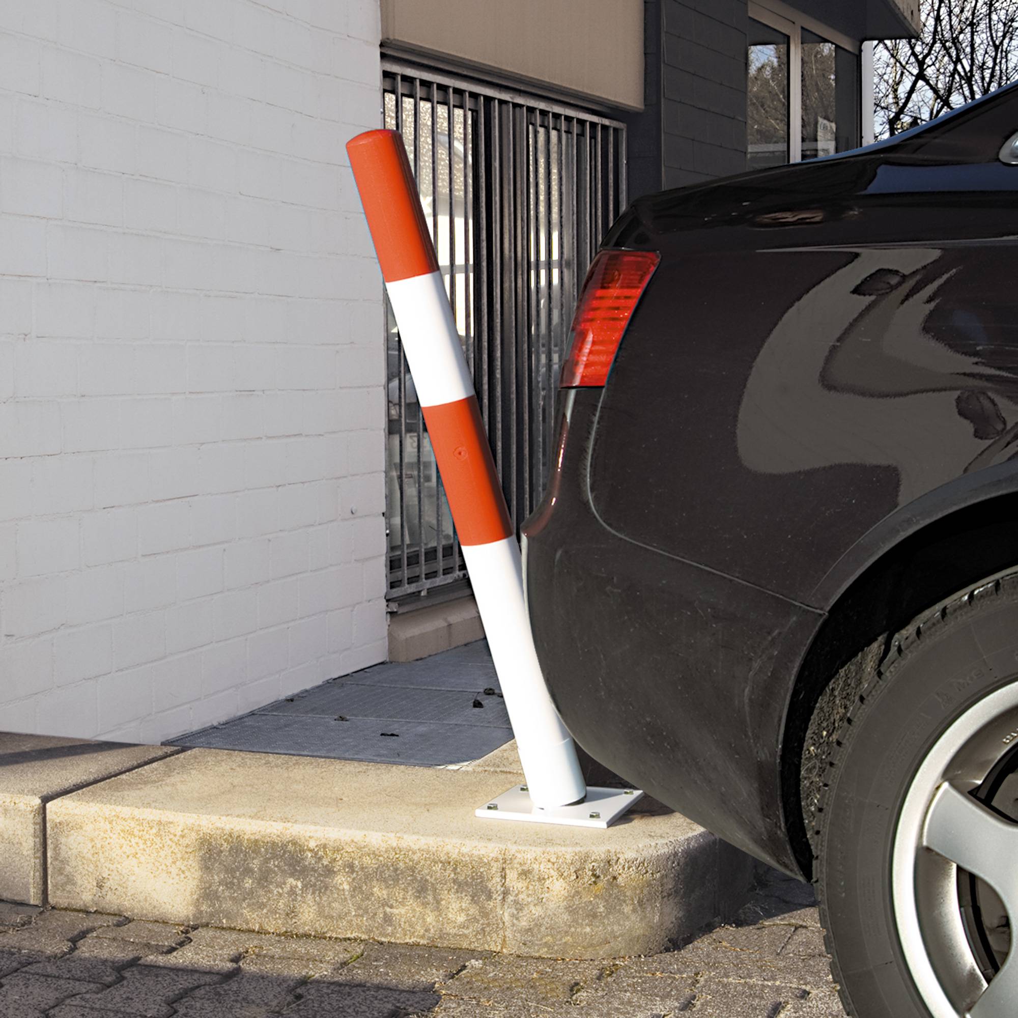 Absperrpfosten aus Stahlrohr flexibel Ø 76 mm zum Aufdübeln rot / weiß. Moravia 51728949
