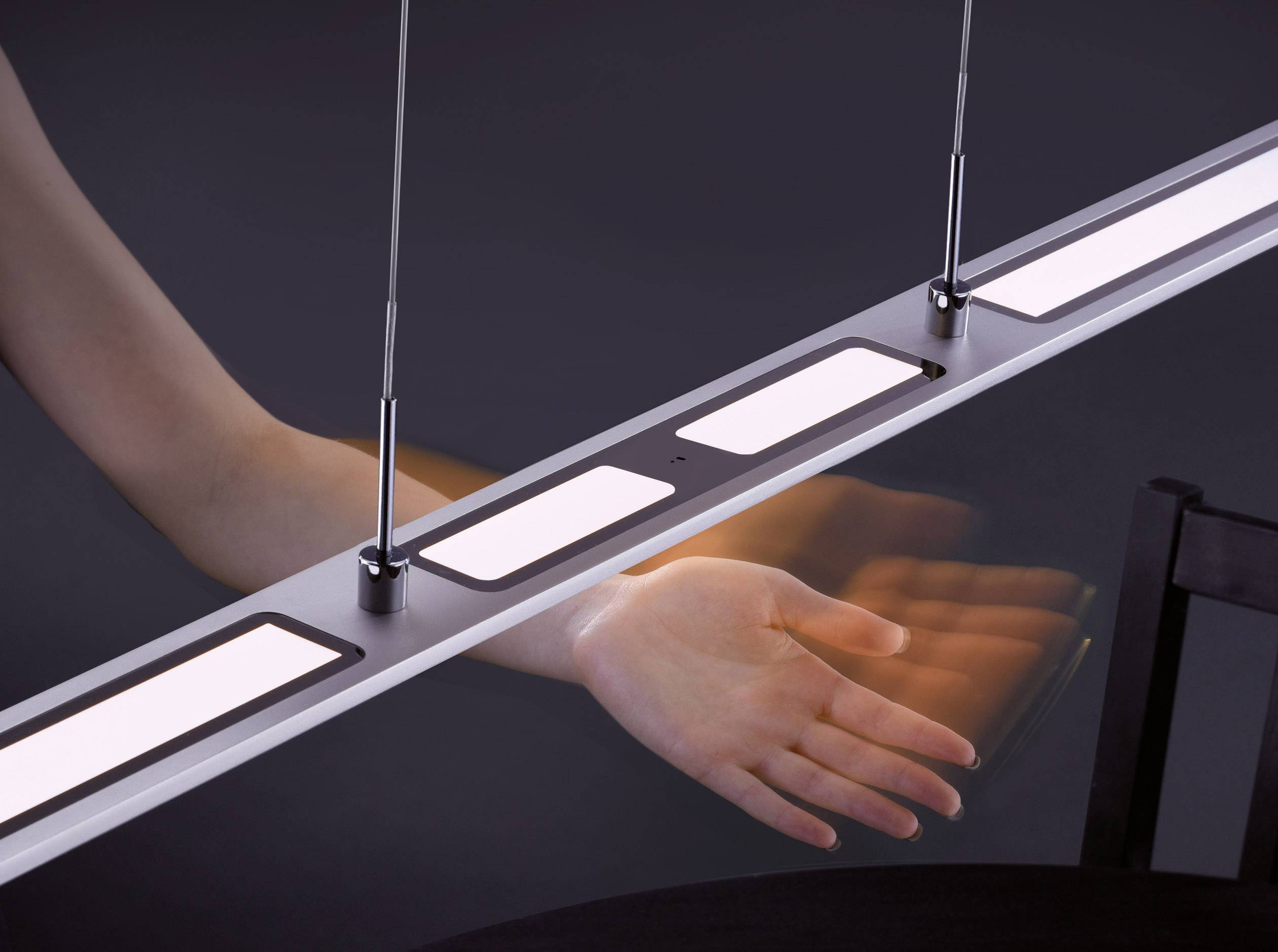 LED Pendelleuchte Nika in Aluminium, höhenverstellbar, steuerbar per Gestensteuerung