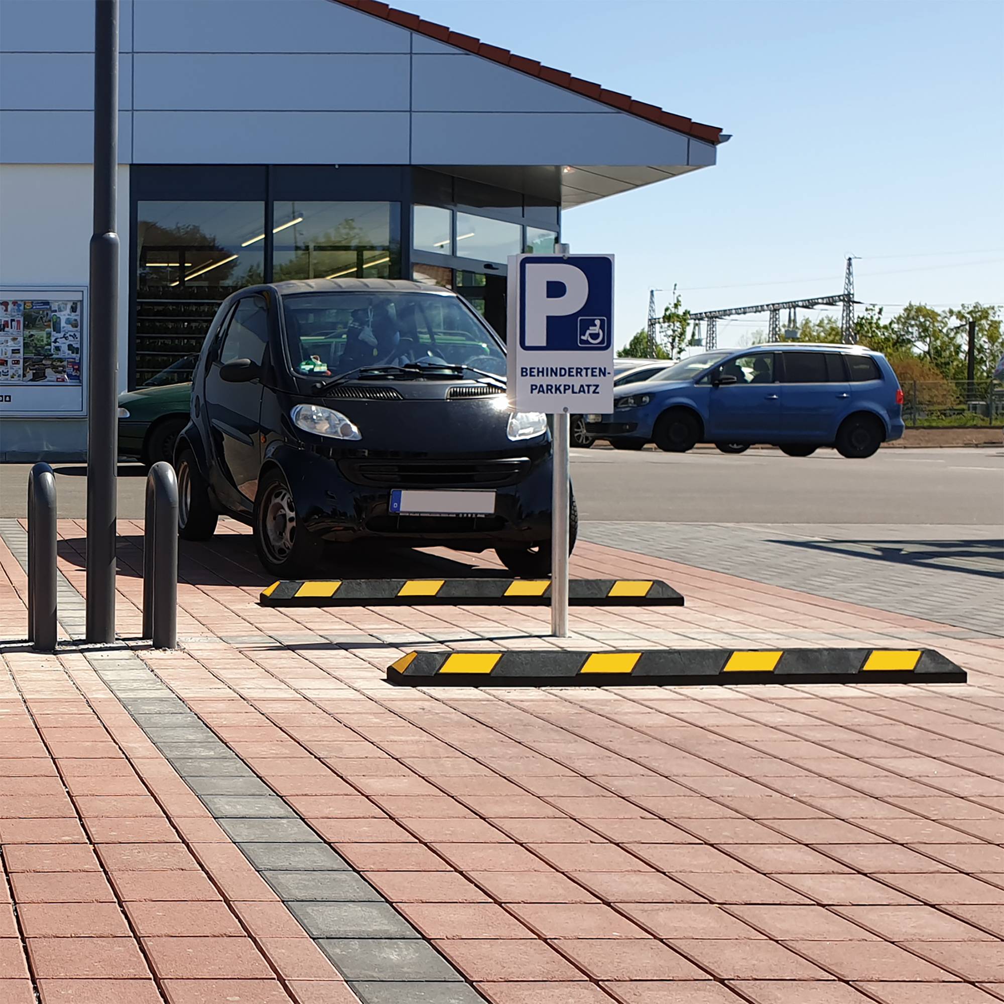 Parkplatzbegrenzung,B 1800mm,Recycling-Gummi,schwarz/gelb