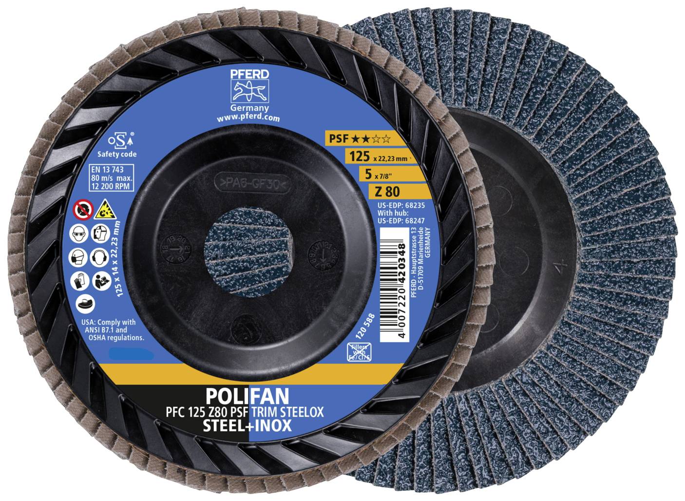 PFERD TOOLS 67771128 Fächerschleifscheibe Durchmesser 125 mm Bohrungs-Ø 22.23 mm Edelstahl, Stahl 10 St.