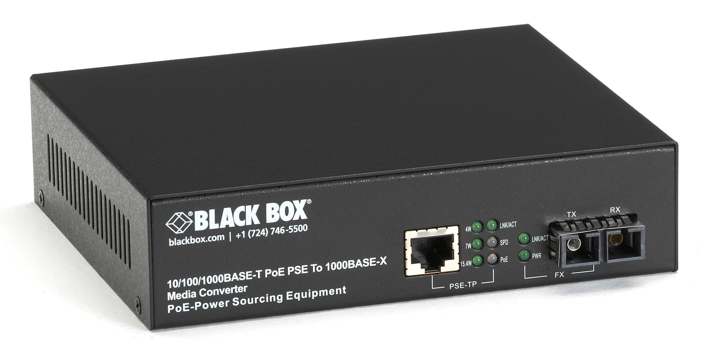 PoE PSE Gigabit Media Converter - (1) 10/100/1000 Mbps RJ45, (1) 1000BaseSX MM SC, 550m