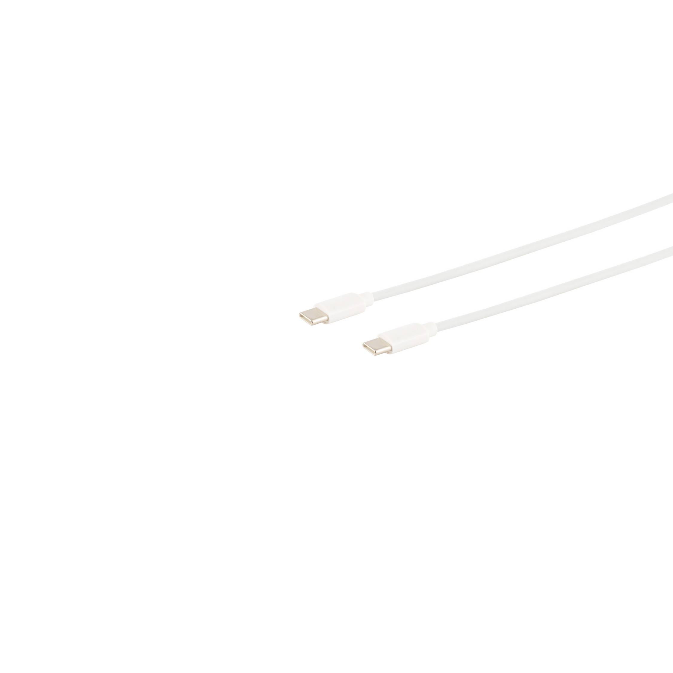 USB Lade-Sync Kabel, USB C Stecker auf USB-C Stecker, 2.0, ABS, weiß, 0,5m