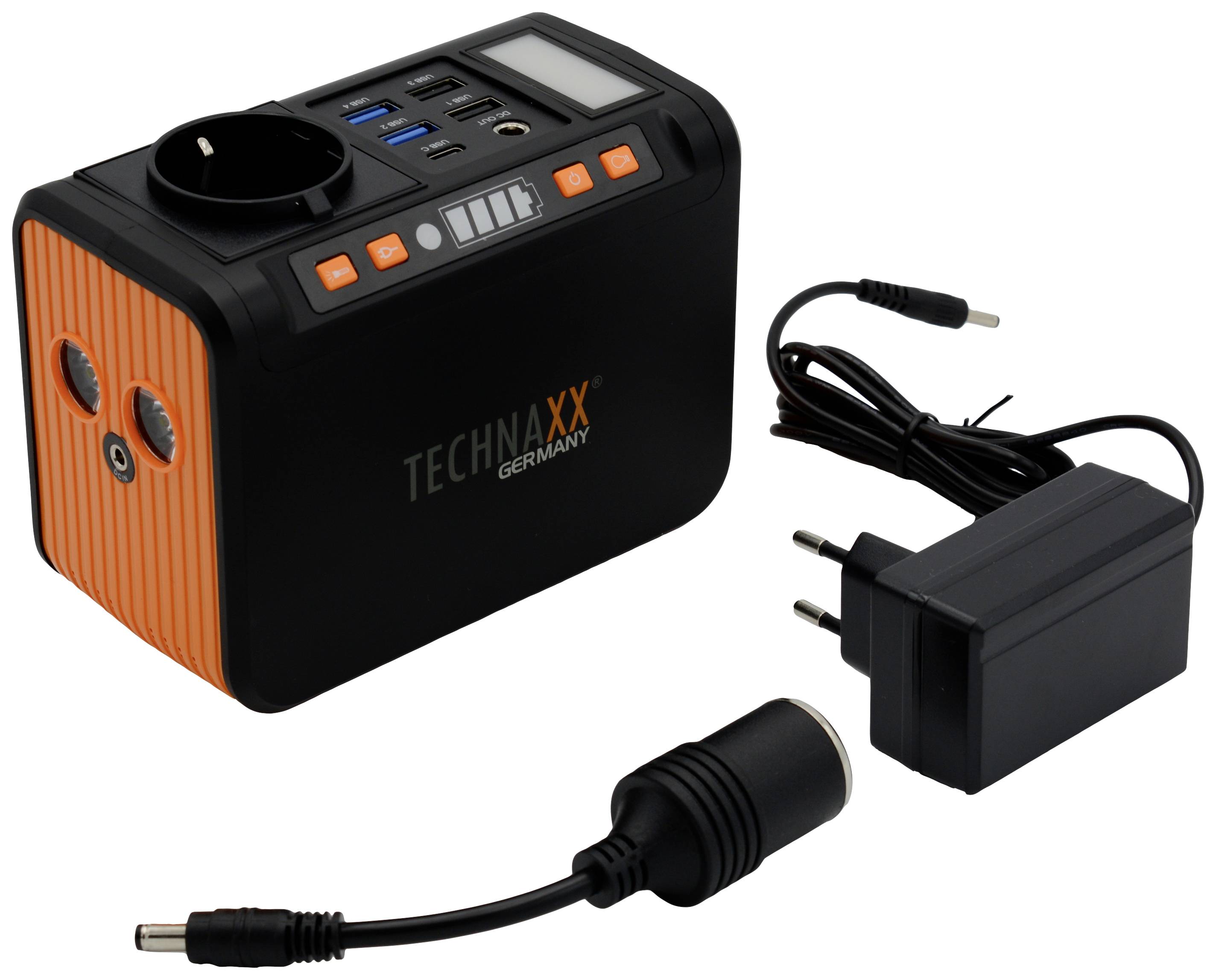 Technaxx Powerstation 20 Ah USB PD 2.0, Quick Charge 3.0 Li-Ion Schwarz/Orange Outdoor