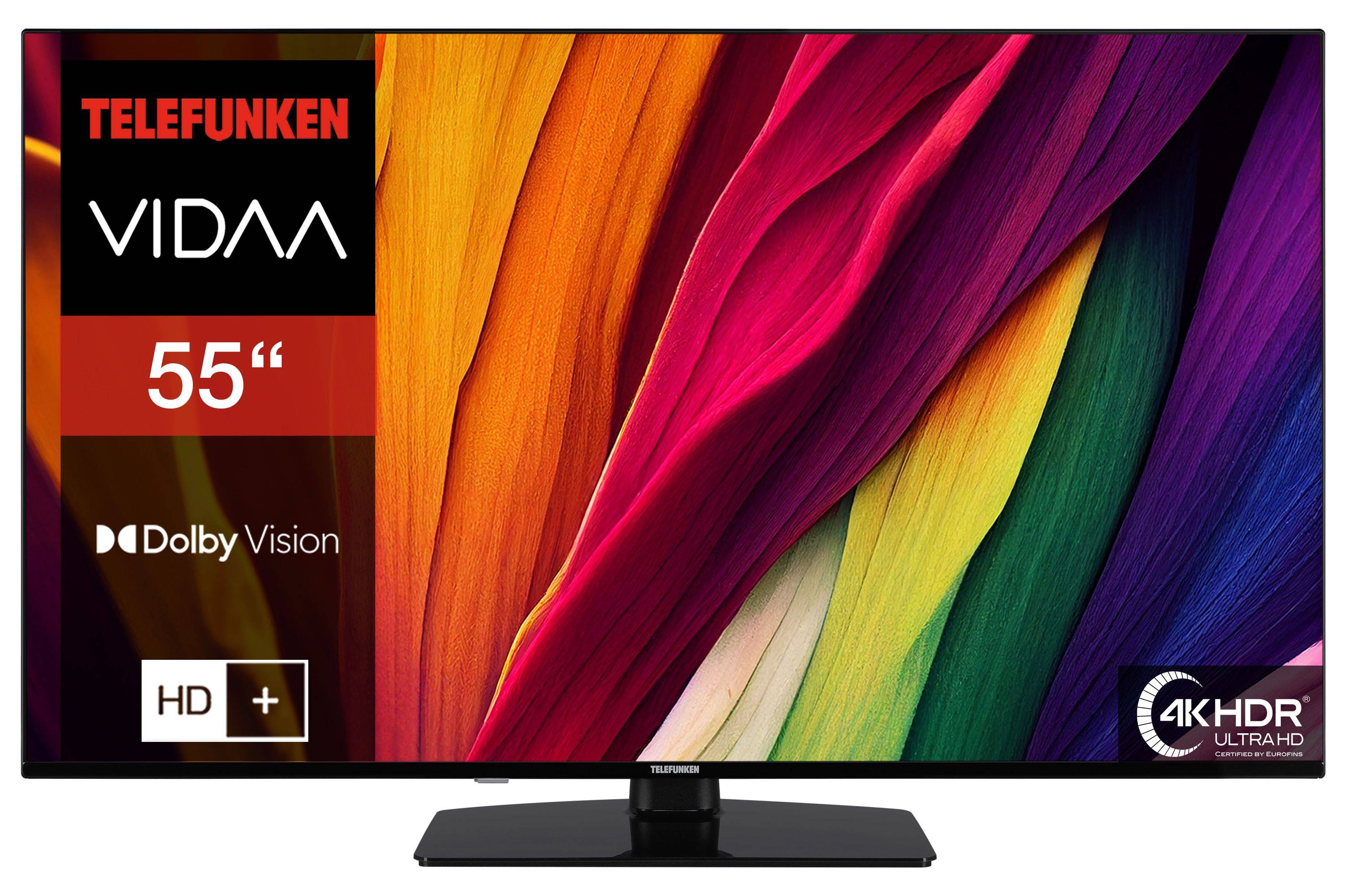 Telefunken Fernseher 55 Zoll Smart TV VIDAA (4K UHD, HDR Dolby Vision, HD+ 6 Monate, Triple-Tuner)