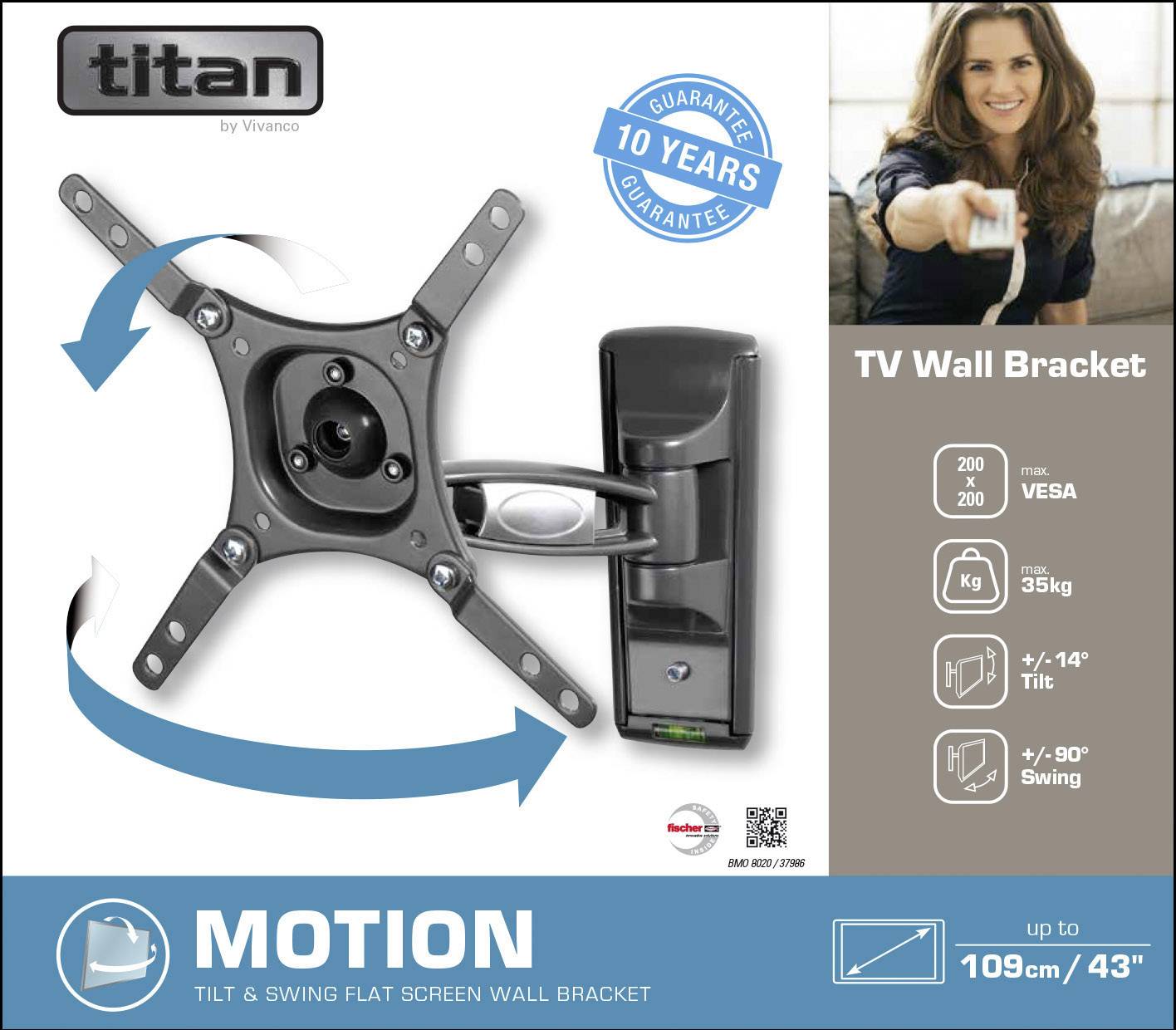 Vivanco BMO 8020 TV-Wandhalterung Schwenkbar, Neigbar, Ausziehbar, Geeignet für Curved-TV's, Variabler Wandabstand 81,3