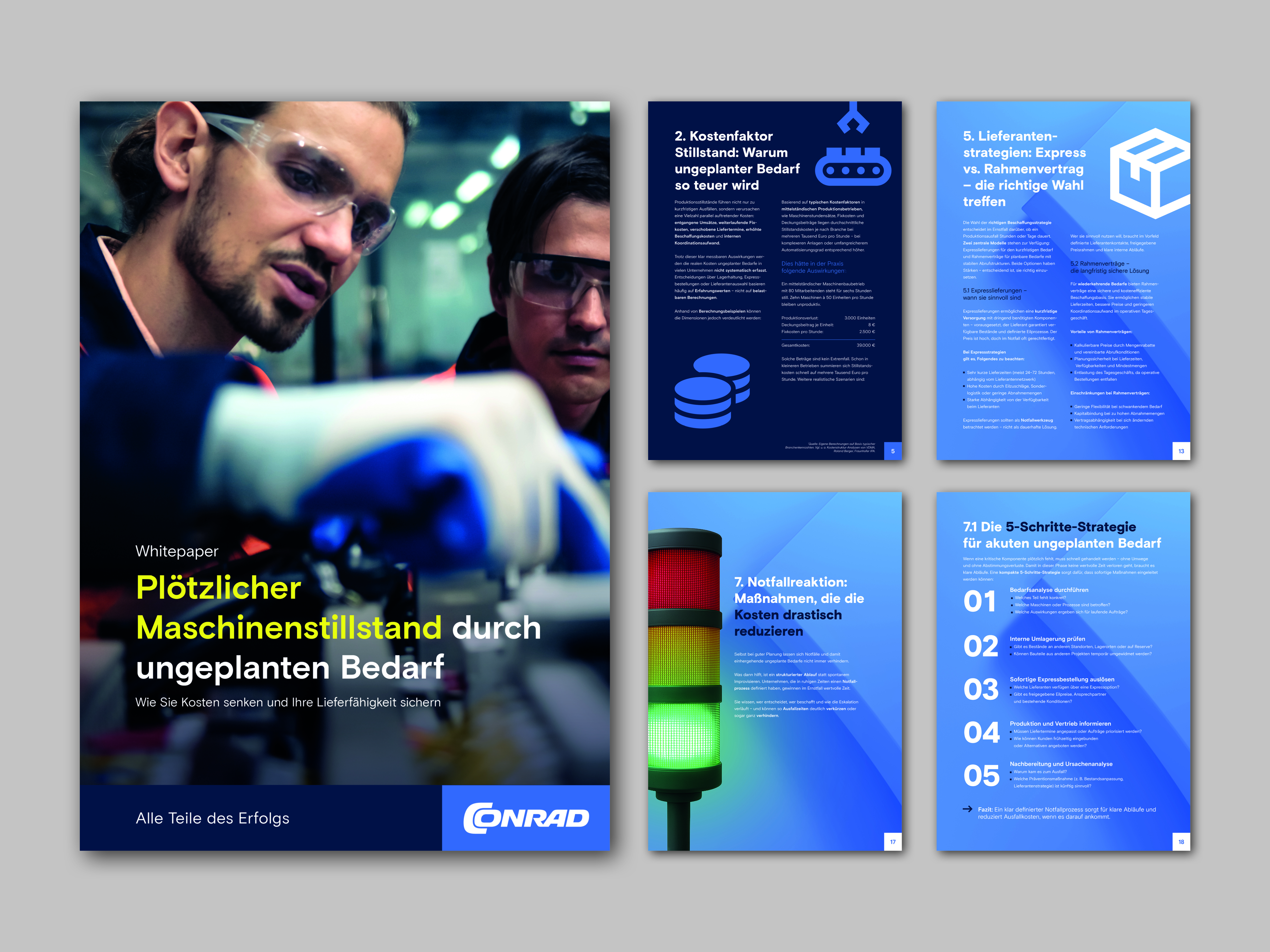 Kompaktes Wissen für alle, die ihre Versorgungssicherheit strukturieren, ihre Stillstandskosten reduzieren und auch bei Engpässen handlungsfähig bleiben wollen? Das neue Whitepaper „Plötzlicher Maschinenstillstand durch ungeplanten Bedarf" ist ab sofort zum kostenfreien Download auf der Conrad Sourcing Platform verfügbar: conrad.de/schnell-reagieren